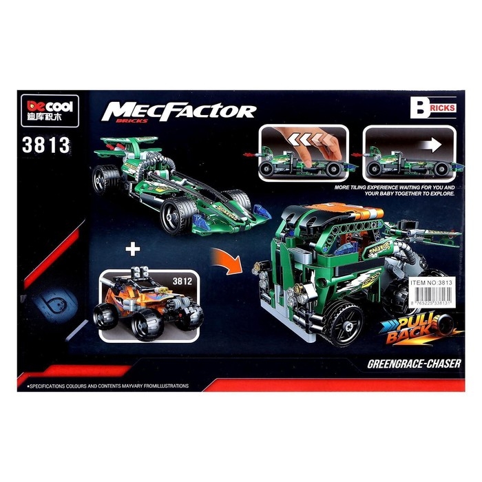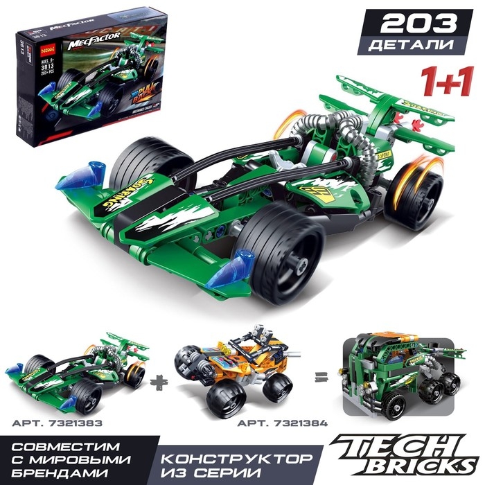 Соберите свою гоночную машинку с инерционным механизмом! Этот конструктор создан для умелых ручек и любознательных умов. Секрет: соедините эту модель с другой и получите эксклюзивную третью версию машинки.