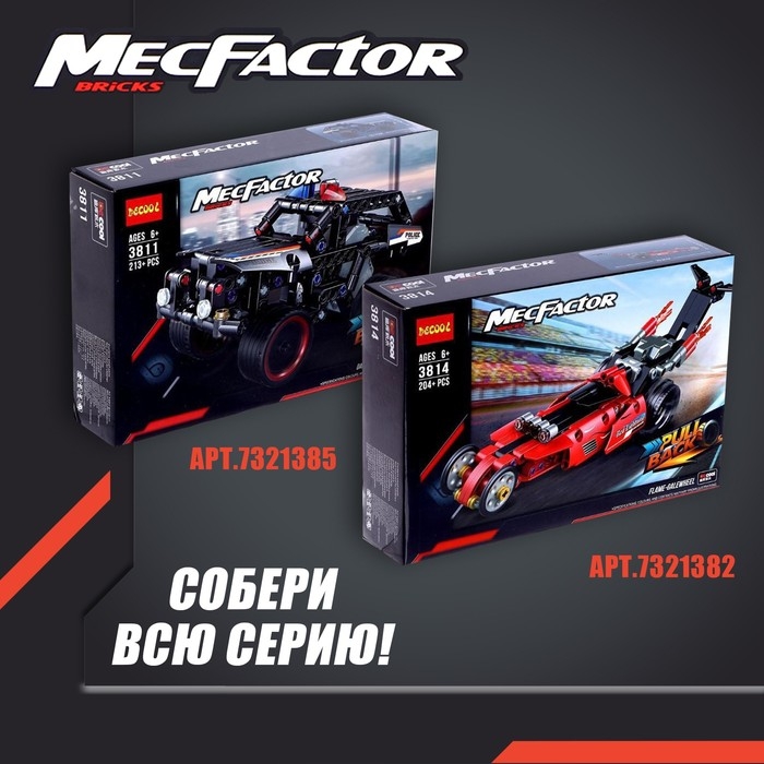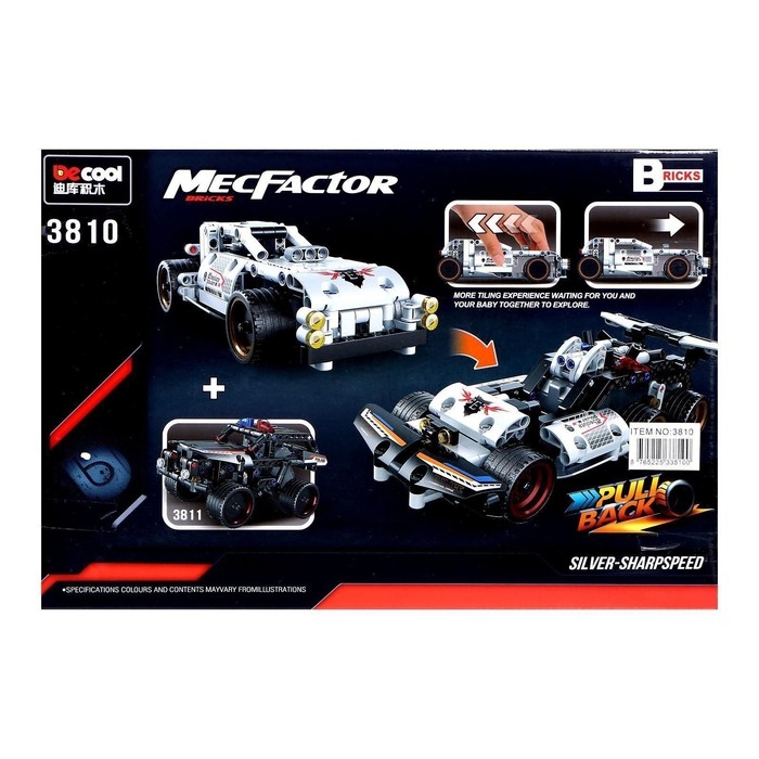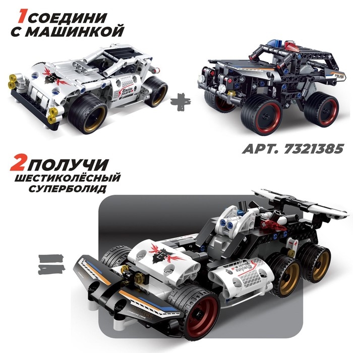 Соберите свою гоночную машинку с инерционным механизмом! Этот конструктор создан для умелых ручек и любознательных умов. Секрет: соедините эту модель с другой и получите эксклюзивную третью версию машинки.