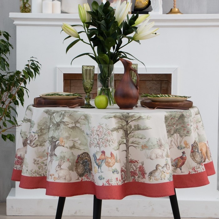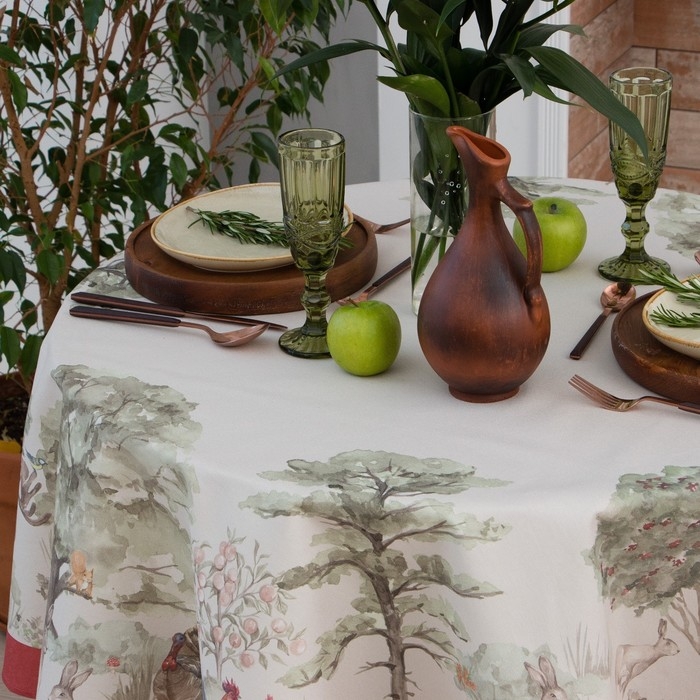 Скатерть Этель Forest landscape d=148 см с ГМВО, 100% хлопок, саржа 190 гр/м2