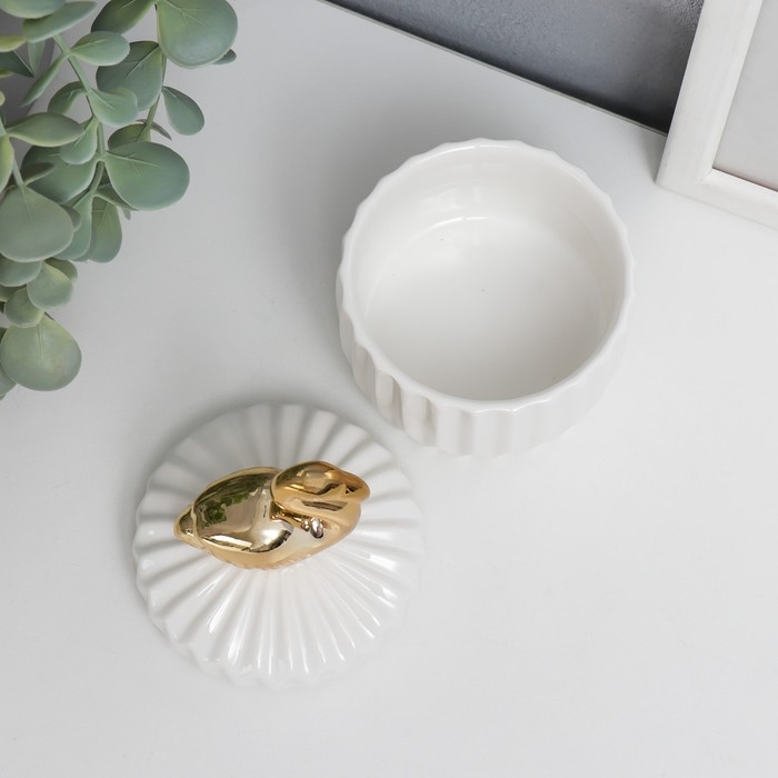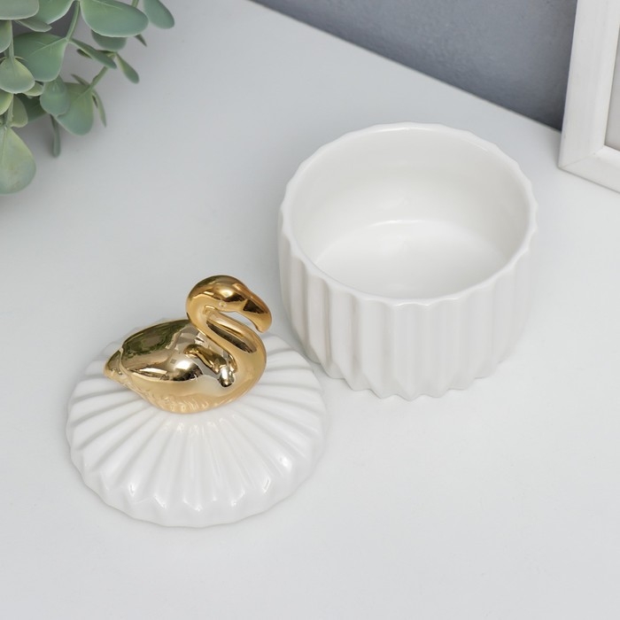 Шкатулка керамика "Золотой фламинго" белый рельеф 12х8,2х8,2 см