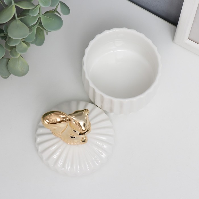 Шкатулка керамика "Золотая белочка" белый рельеф 12х8,2х8,2 см