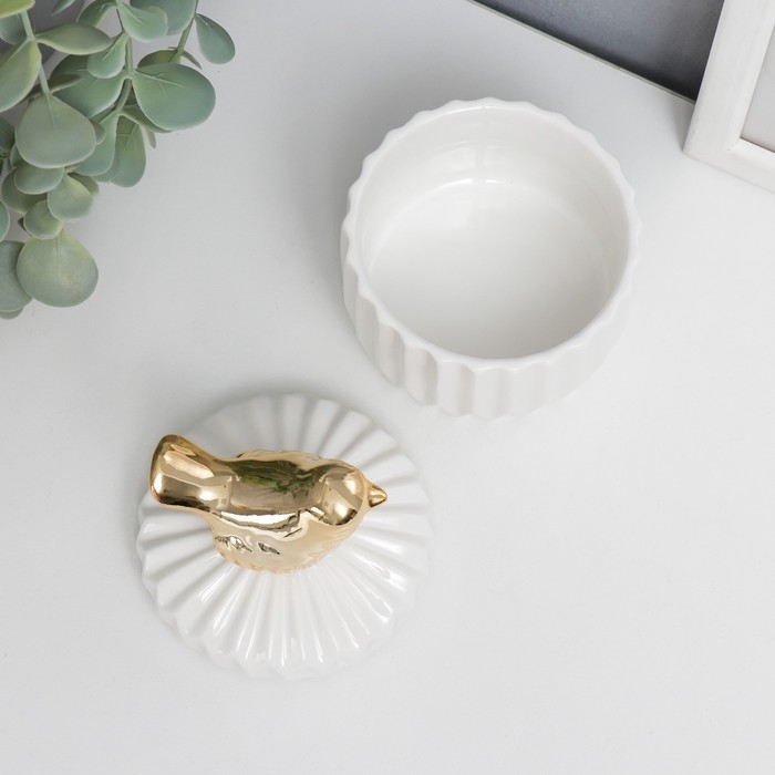 Шкатулка керамика "Золотой воробушек" белый рельеф 11х8,2х8,2 см