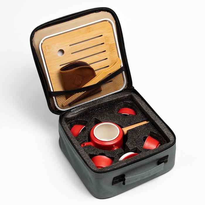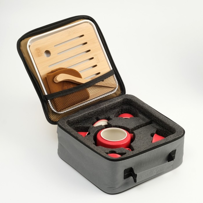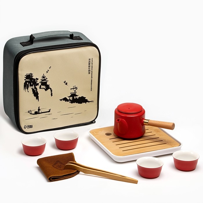 Портативный чайный набор, благодаря компактной сумке с ручкой, удобно брать с собой на природу, в гости, на дачу. Посуда подходит как для торжественных чайных церемоний, так и для повседневного домашнего использования. Изделие изготовлено из прочной керамики, а крышка соединена с ручкой с помощью веревки, чтобы избежать падения.