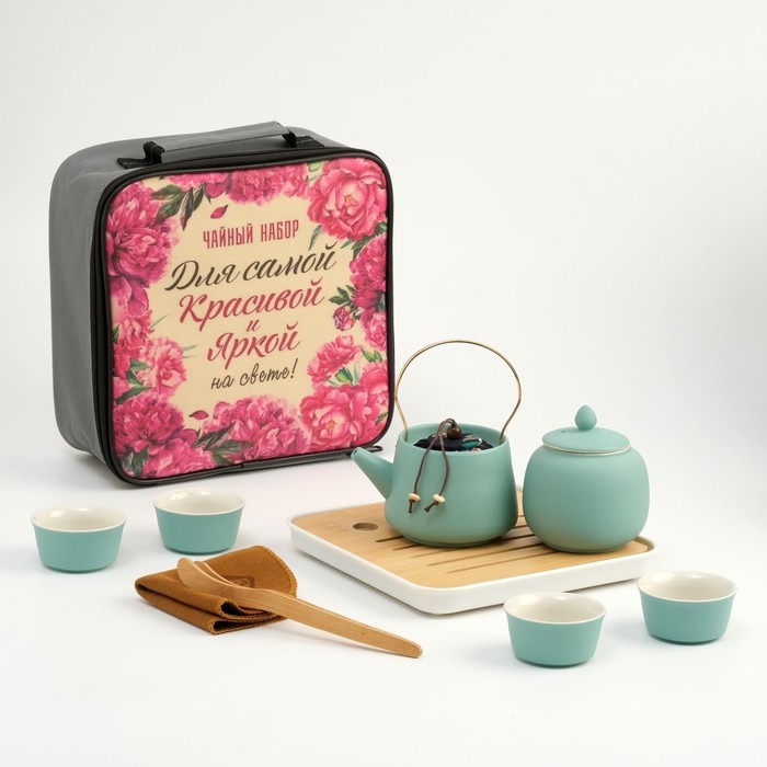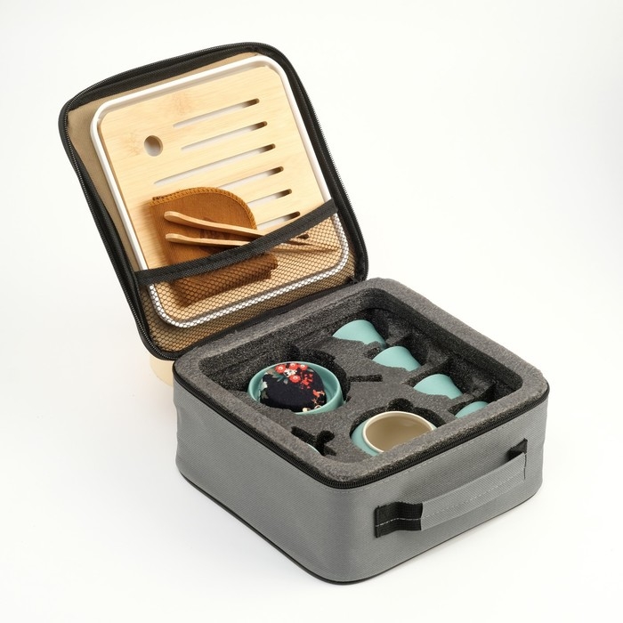 Портативный чайный набор, благодаря компактной сумке с ручкой, удобно брать с собой на природу, в гости, на дачу. Посуда подходит как для торжественных чайных церемоний, так и для повседневного домашнего использования. Изделие изготовлено из прочной керамики, а крышка соединена с ручкой с помощью веревки, чтобы избежать падения.