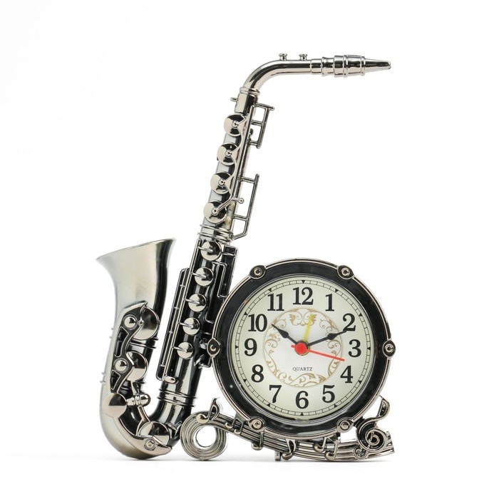Часы - будильник настольные "Саксофон", дискретный ход, d-6.5 см, 18,5 x 15 см, АА