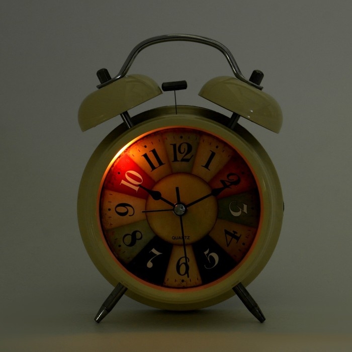 - Будильник оснащён кварцевым механизмом с дискретным ходом стрелок.
