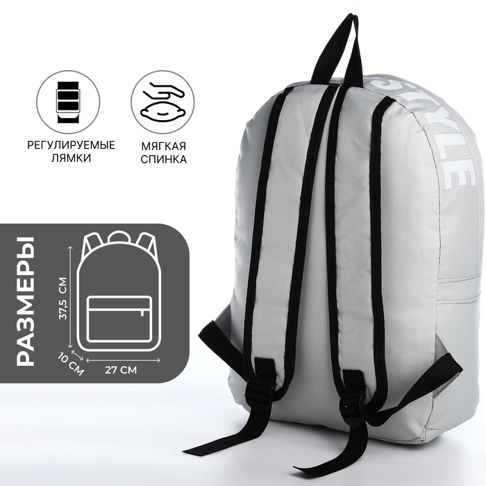 Рюкзак школьный на молнии, наружный карман, 2 боковых кармана, цвет серый