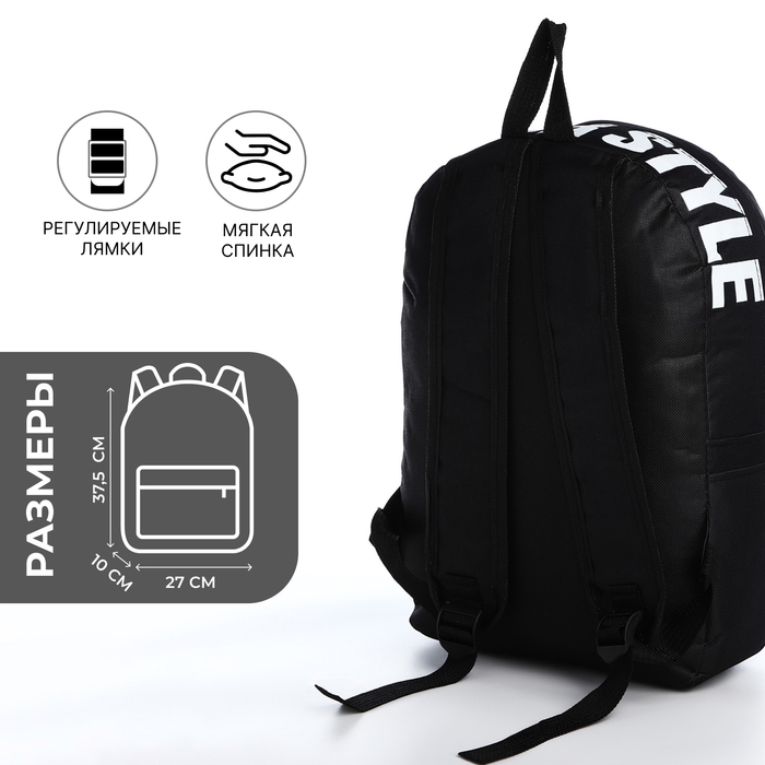 Рюкзак школьный на молнии, наружный карман, 2 боковых кармана, цвет чёрный