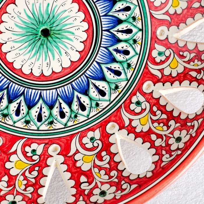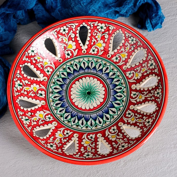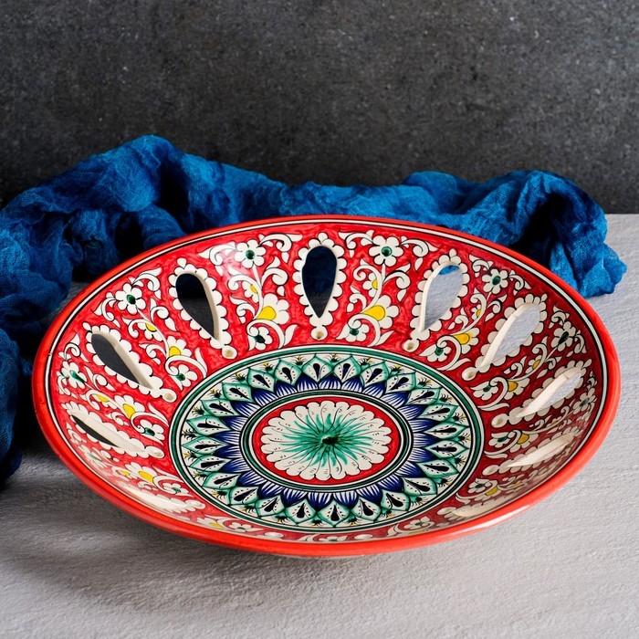 Фруктовница Риштанская Керамика "Узоры", 33 см, красная