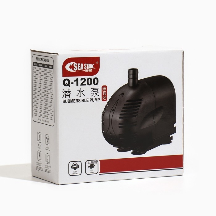 Помпа фонтанная Sea Star Q-1200, 1200 л/ч, 18 Вт, высота подъема воды 1,2 м