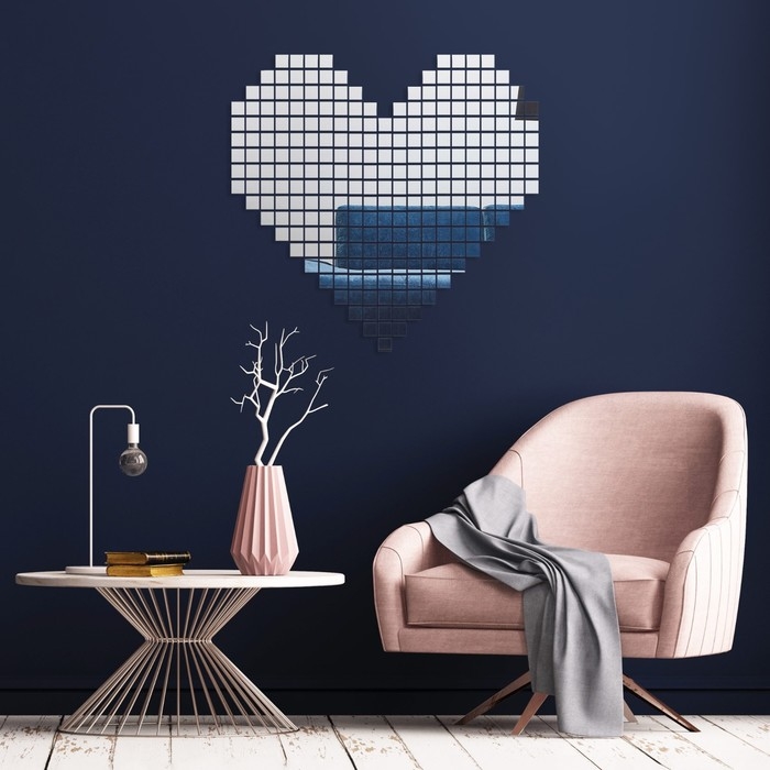 Наклейки интерьерные "Сердечки", зеркальные, декор на стену, 261 эл, размер эл 2 х 2 см