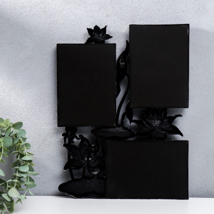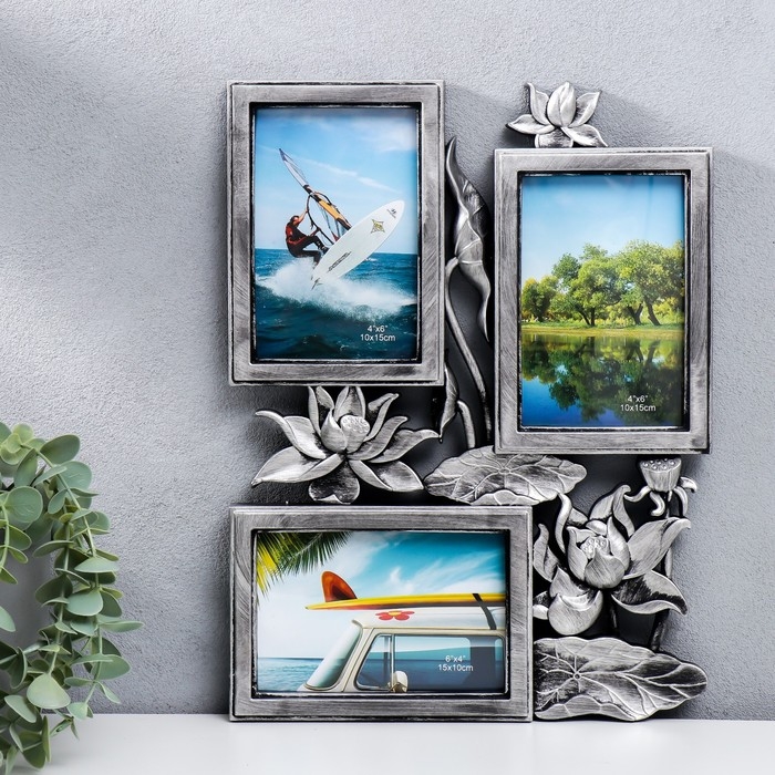 Фоторамка пластик на 3 фото 10х15 см "Лотосы" тёмное серебро 36х27 см
