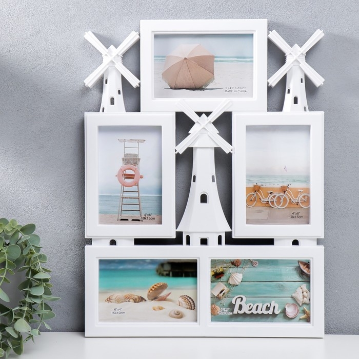 Фоторамка пластик на 5 фото 10х15 см "Мельницы" белый 45х34 см