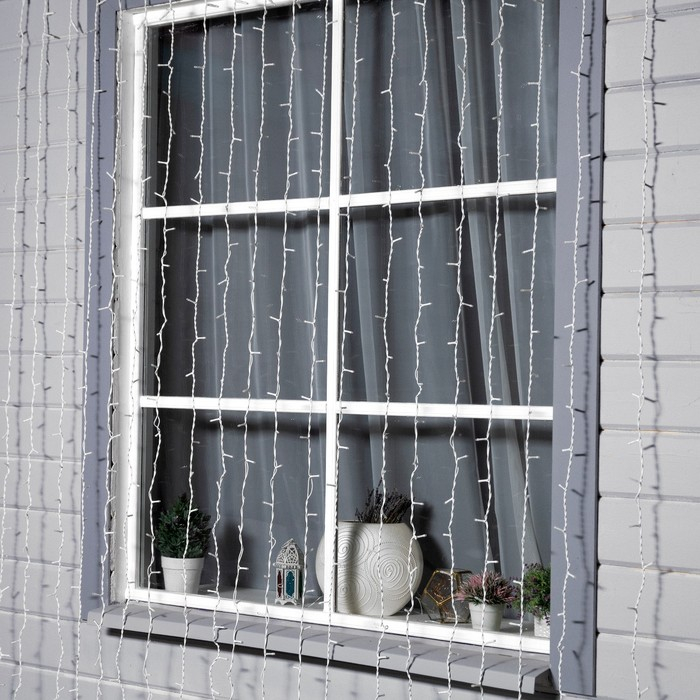 Гирлянда «Занавес» 2 × 9 м, IP44, УМС, белая нить, 1800 LED, свечение мульти, 220 В