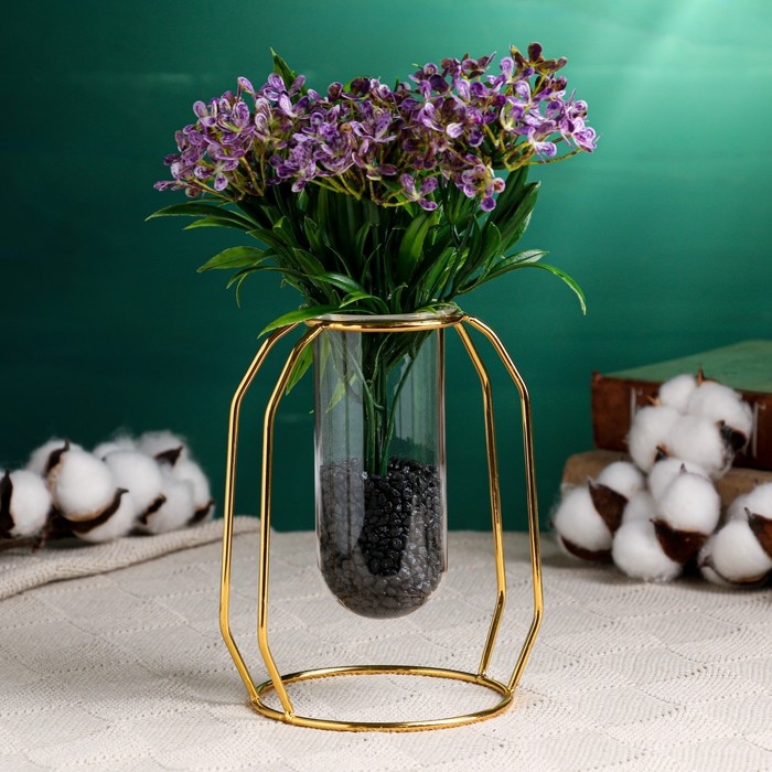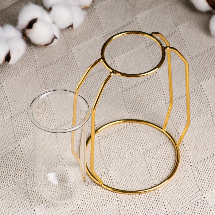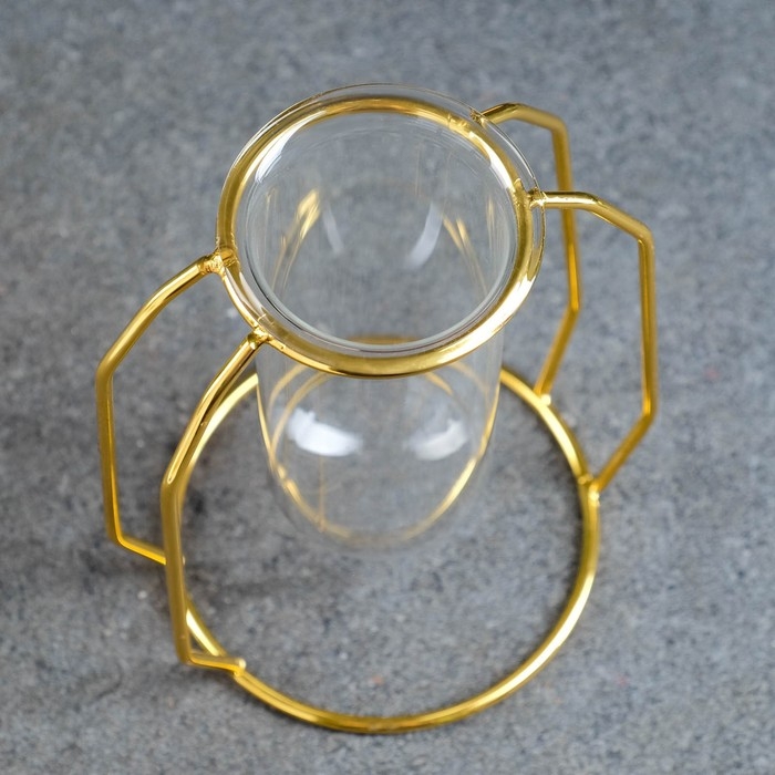 Кашпо на золотой подставке стеклянное, 10х15х5,5см