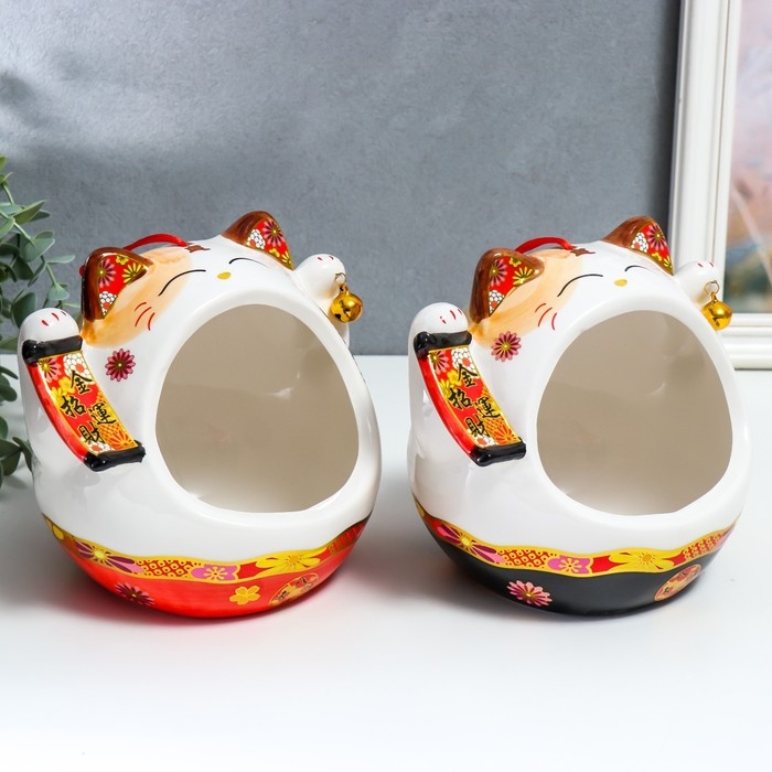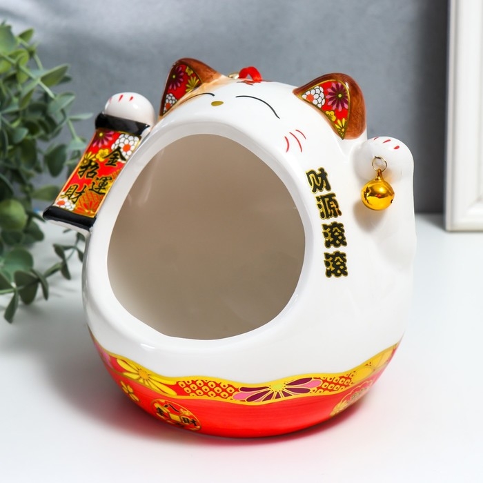 Сувенир подставка керамика "Манэки-нэко со свитком и колокольчиком" МИКС 21х16х20 см