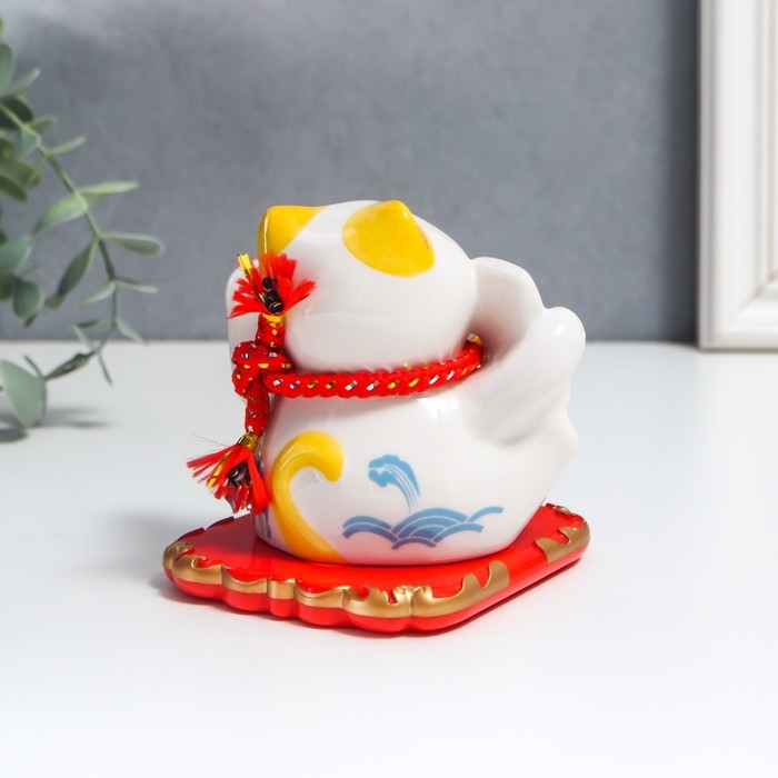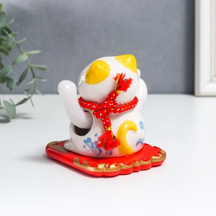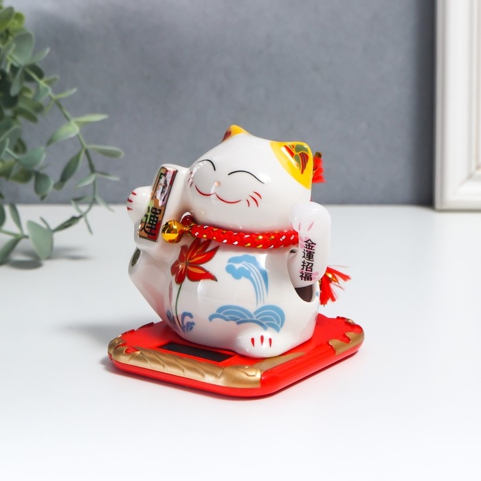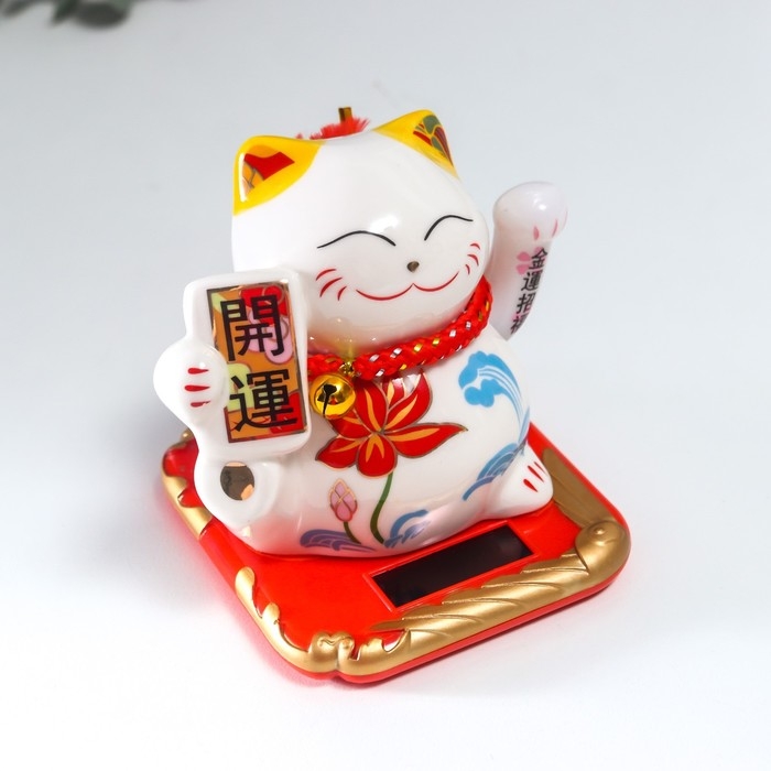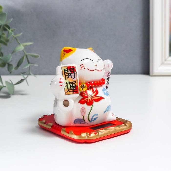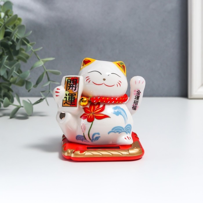 Маятник керамика "Манэки-нэко с цветком" от солнечных батарей 10х8,3х9,7 см