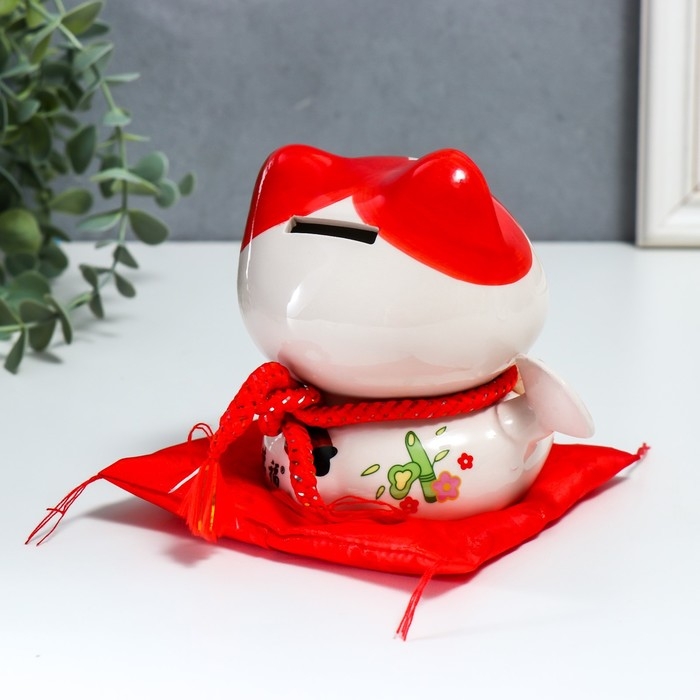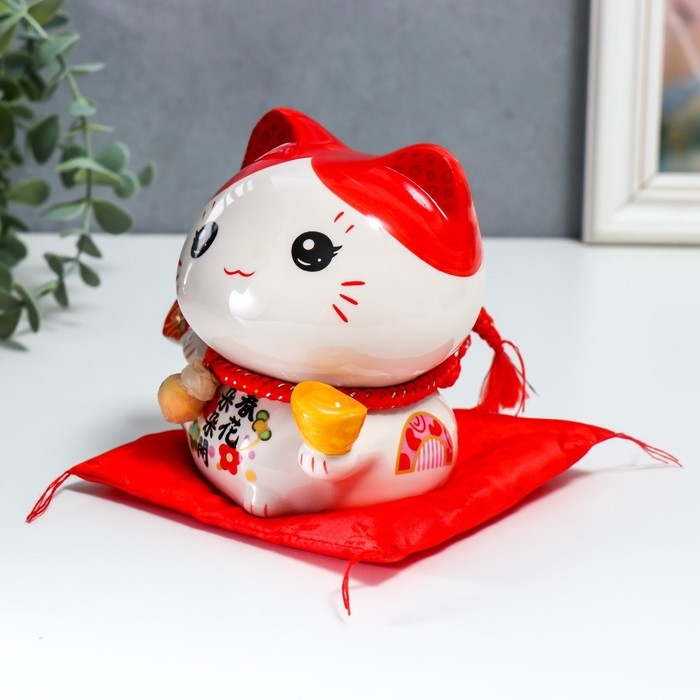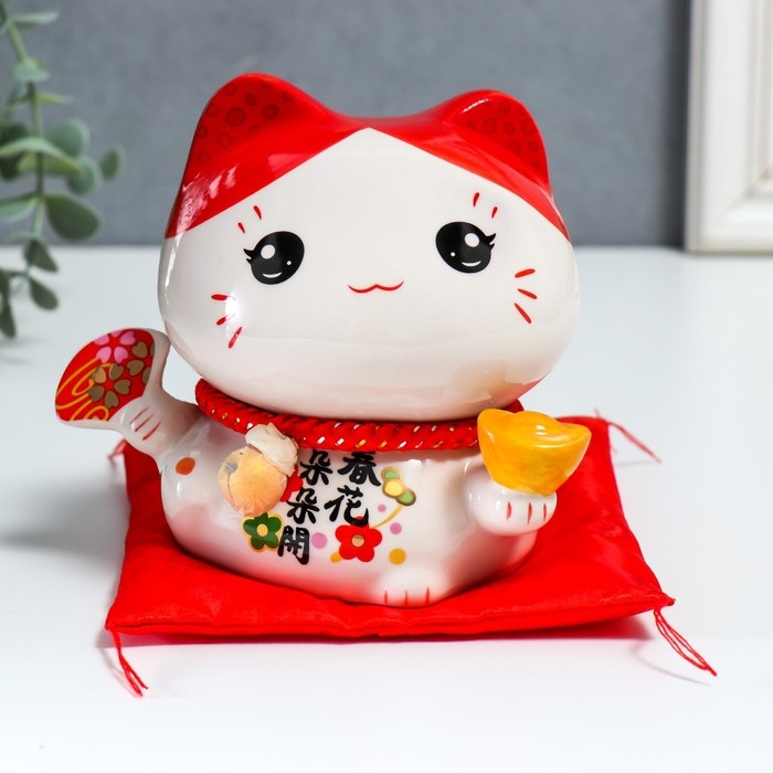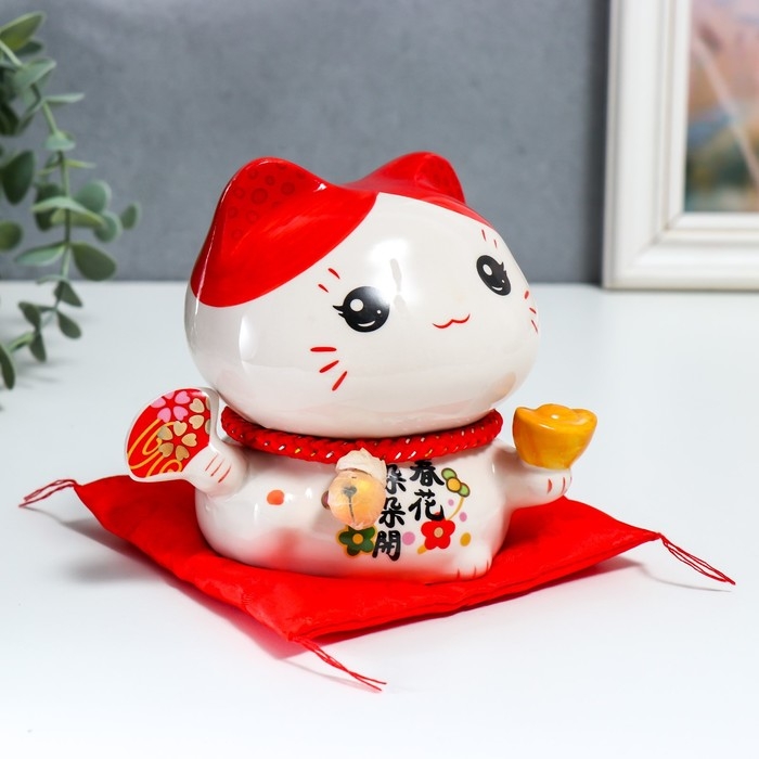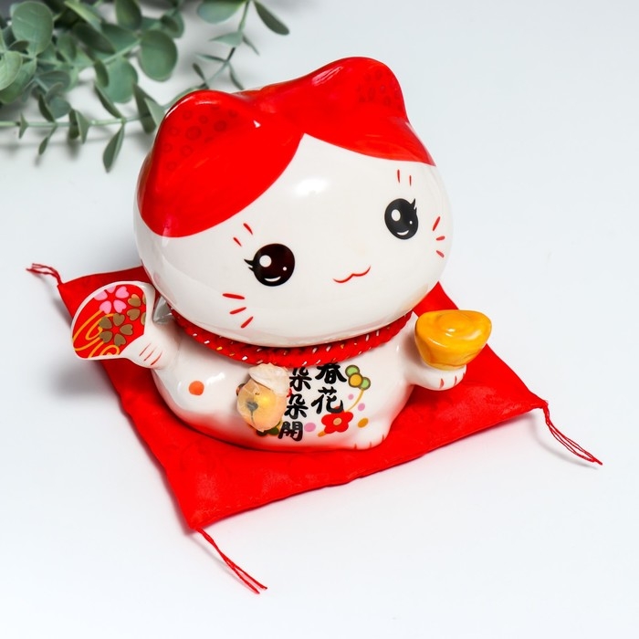 Копилка керамика "Манэки-нэко с цветочным веером" 12,5х10х11 см