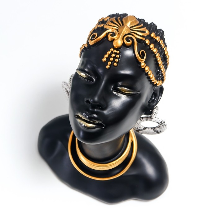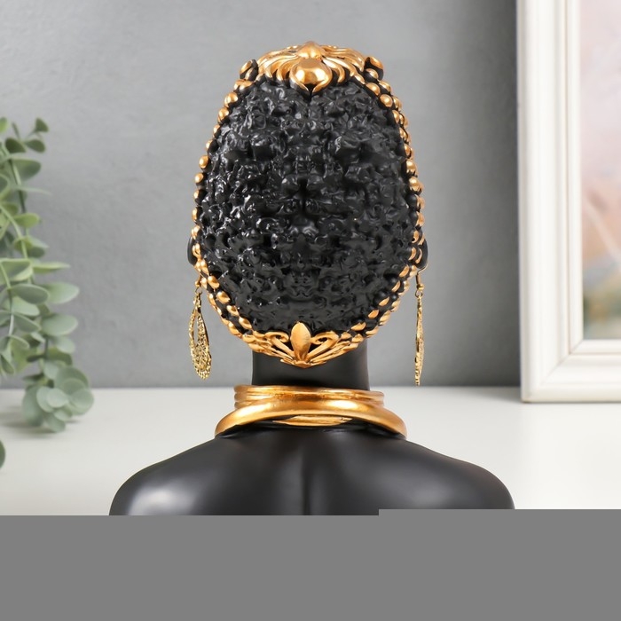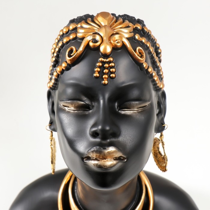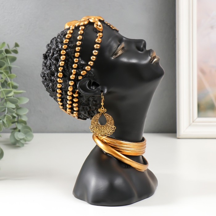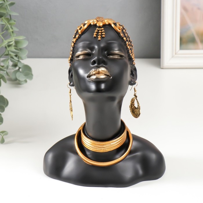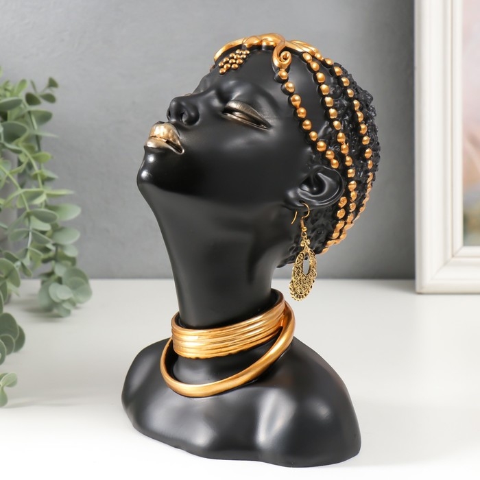 Сувенир полистоун бюст "Девушка из африканского племени" чёрный с золотом 23х10х18,5 см