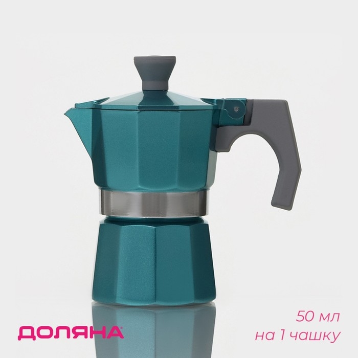 Кофеварка гейзерная Доляна Azure, на 1 чашку, 50 мл, цвет бирюзовый