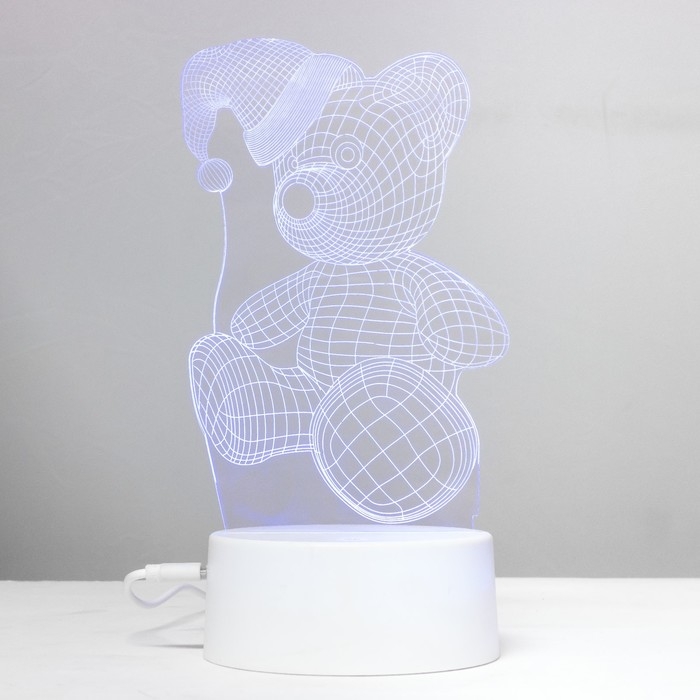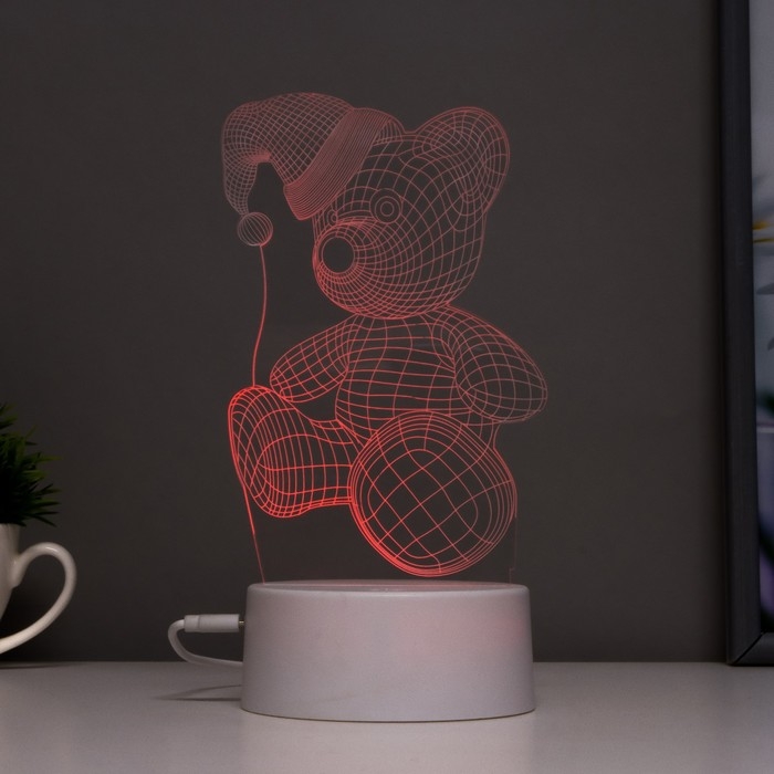 Светильник сенсорный "Мишка в шапке" LED 7 цветов USB/от батареек белый