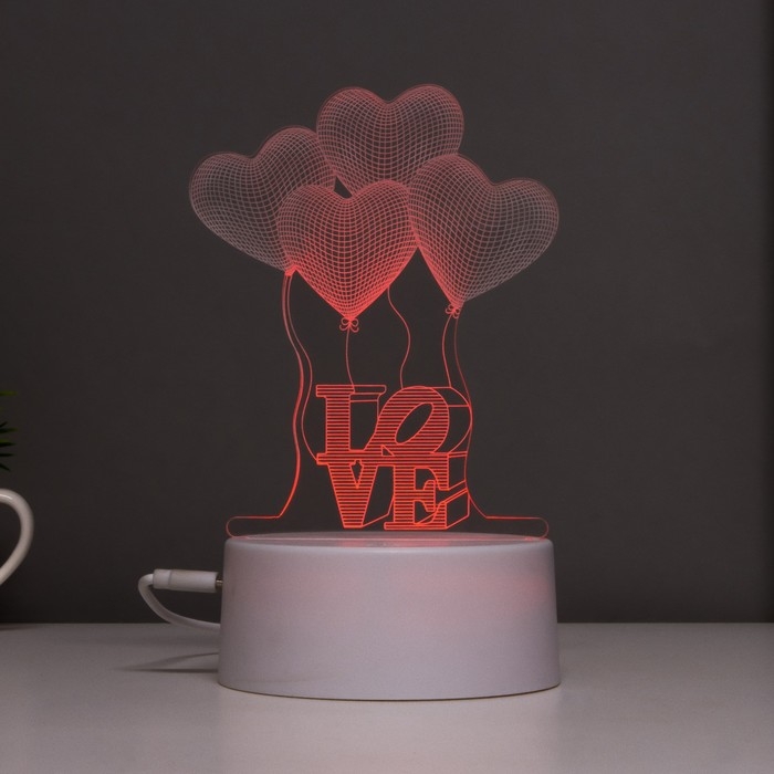 Светильник сенсорный "Четыре сердца" LED 7 цветов USB/от бат. белый RISALUX
