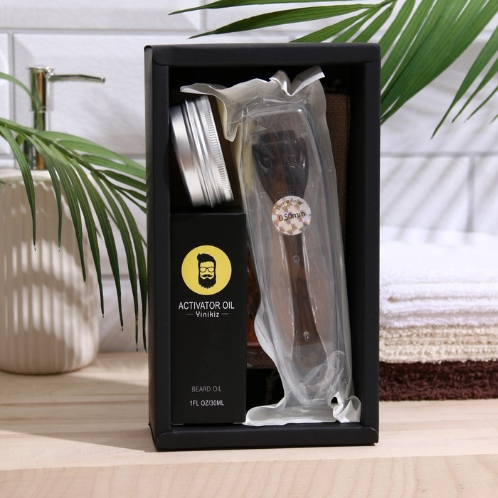 В набор входит: воск для бороды и усов, масло для бороды и усов, расческа, мезороллер.