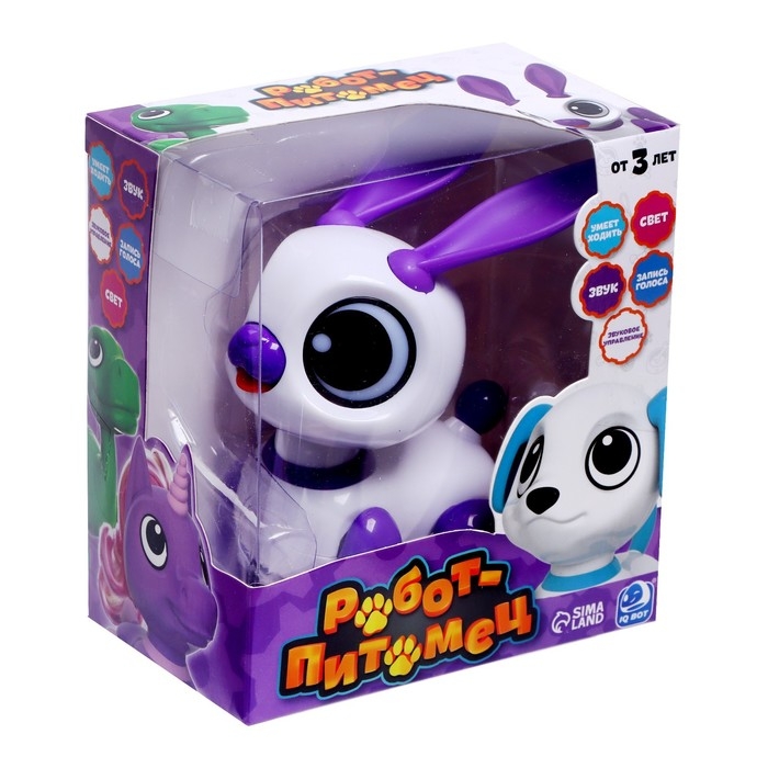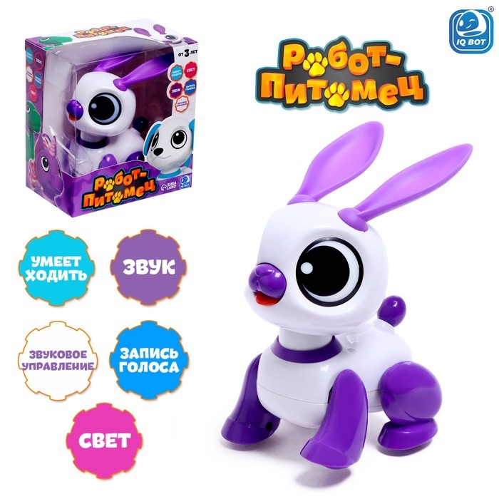 Робот кролик «Питомец» IQ BOT, интерактивный: с записью звуков, реагирует на хлопки, звук, свет, на батарейках, розовый