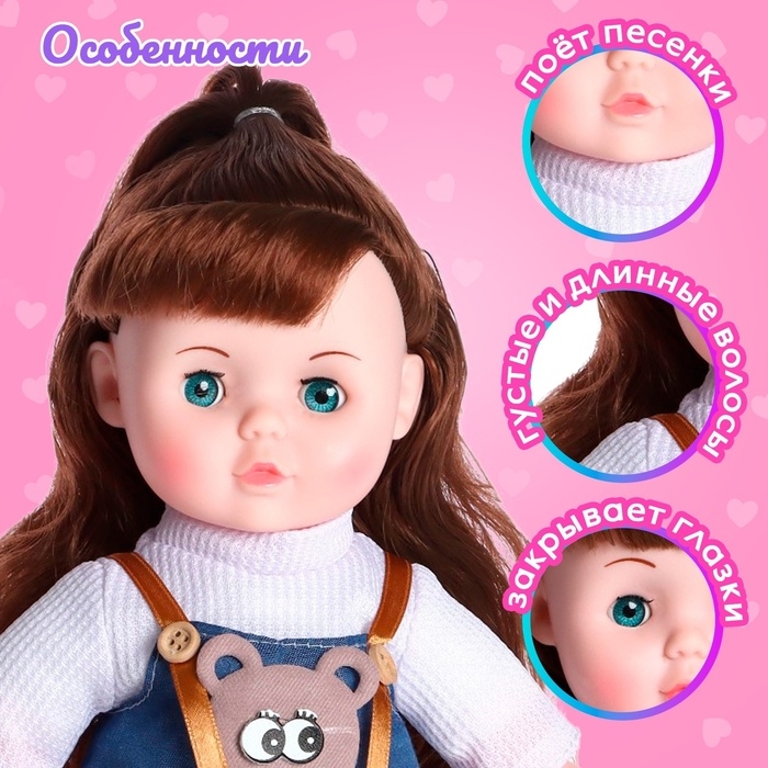 Кукла мягконабивная «Милашка» 32 см, со звуком, в комбинезоне
