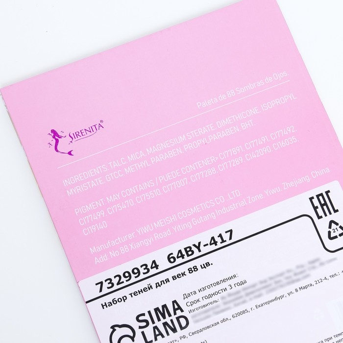 Состав:Talc, Mica, Oll, Kaolin, Tianium Dioxide, Magnesium Stearate, Isopropyl Palmitate, Lanolin, Methylparaben, Propylparaben, BHT. Может содержать: Maca and Titanium Dioxide, Iron Oxides, Manganesc Violet, Ultramarine Blue, Chrome Oxide Greens, Hydrated Chrome Oxide Green, FD&C Yellow No.5 Al Lake, FD&C Blue NO. 1 Al Lake.