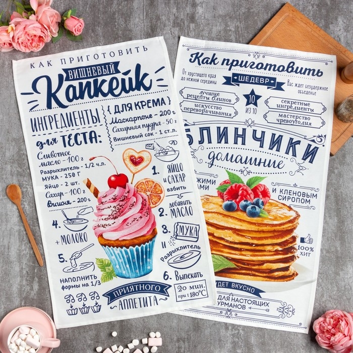 Набор полотенец "Этель" Капкейк 40х73 см - 2 шт, 100% хлопок, саржа 190 г/м2