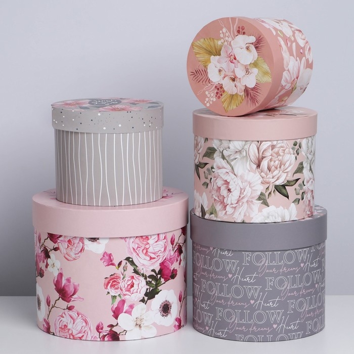 Набор коробок 5 в 1, упаковка подарочная, «Цветы», 13 х 13,5‒19.5 х 23 см