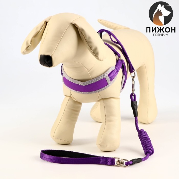 Комплект мягкая шлейка, поводок 120 х 1 см с вертлюгом, S, ОШ 26-67 см, ОГ 26-67 см, фиол