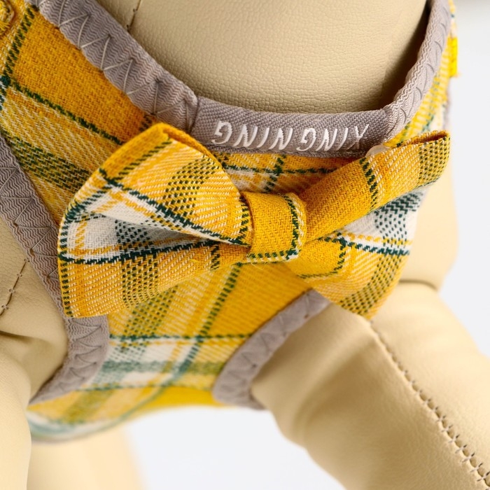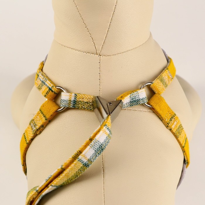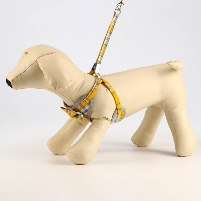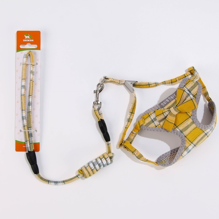 Комплект амуниции с мягкой шлейкой, 120 х 1 см, ОШ 28-54 см, ОГ 36-60 см, серо-жёлтая клетка