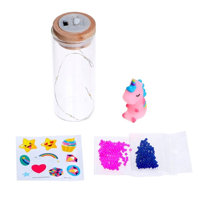 - Для создания оригинального светильника засыпьте в баночку заготовки для шариков-растушек и залейте их чистой водой. Подождите, пока они вырастут.