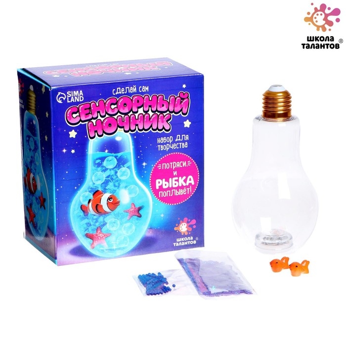 Изготовление такого ночника поможет развить сенсорику малыша. Взаимодействуя с составляющими творческого набора, ребёнок закрепит знания об окружающих предметах и потренирует образное мышление.