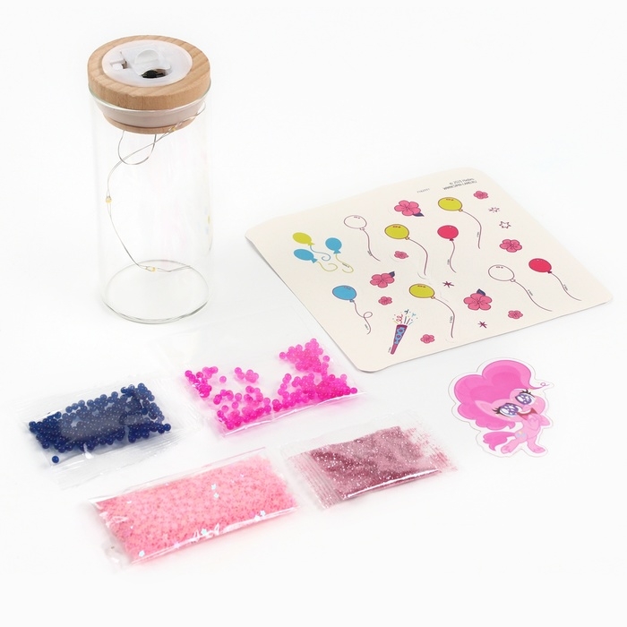 - Когда шарики выросли, насыпьте их в колбу и добавьте сухие блёстки.