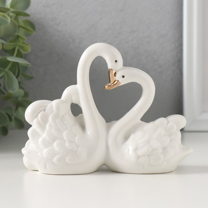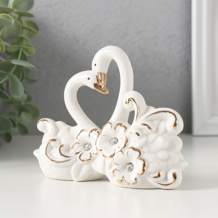 Сувенир керамика "Лебеди в цветах" белый, со стразами, 10х13,4х4,2 см