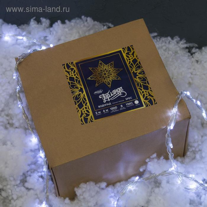 Гирлянда «Водопад» 2 × 6 м, IP44, УМС, прозрачная нить, 1500 LED, свечение белое, 8 режимов, 220 В