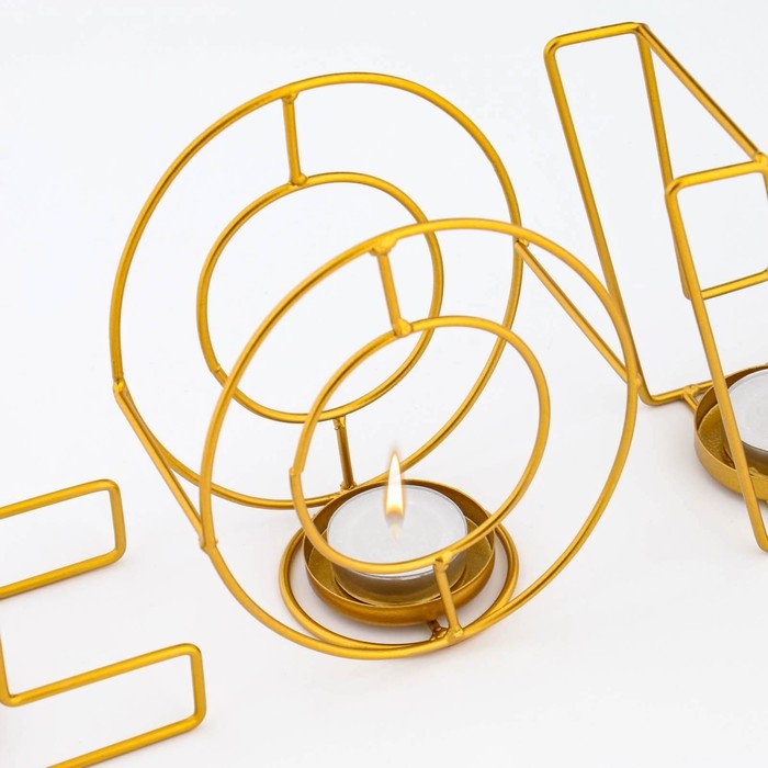 Подсвечник металлический настольный "Love", 13.5 х 42 см, золото