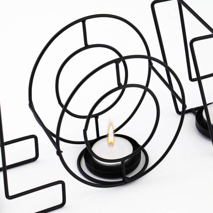Креативный подсвечник для интерьера с фигурными прорезями слова «LOVE» отлично подойдет для украшения спальни, а также для вечера наедине со своей половинкой. Плоское дно позволяет поставить подсвечник на столик или прикроватную тумбочку.
