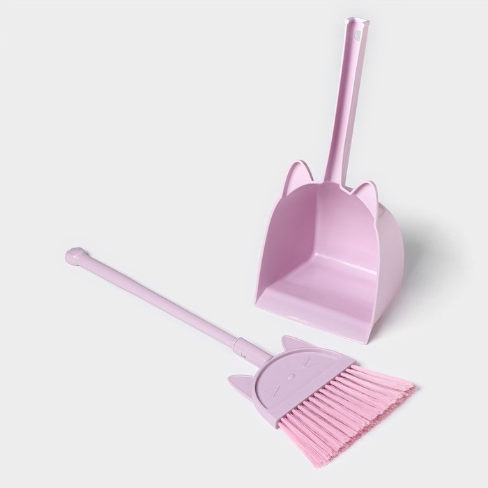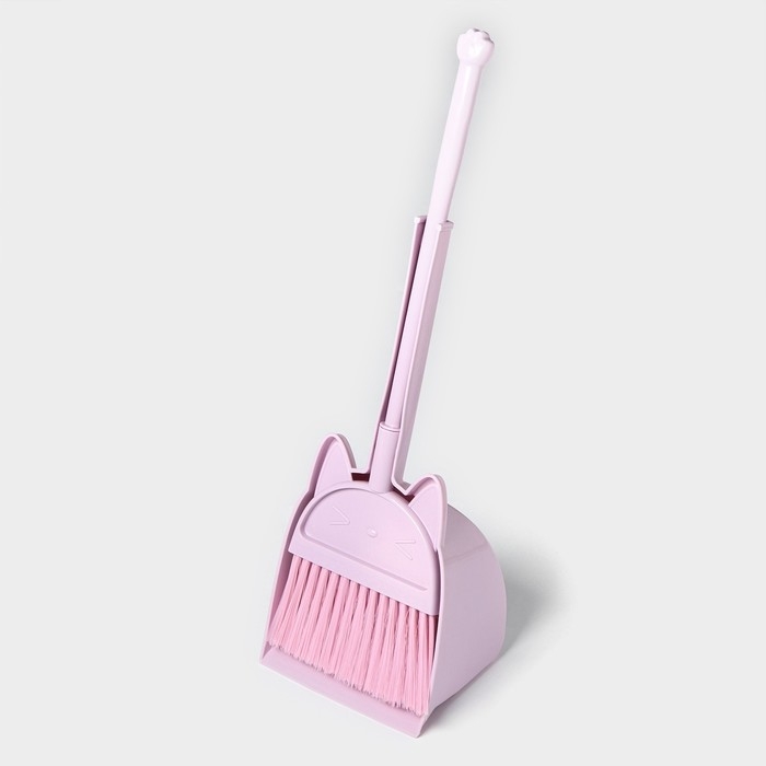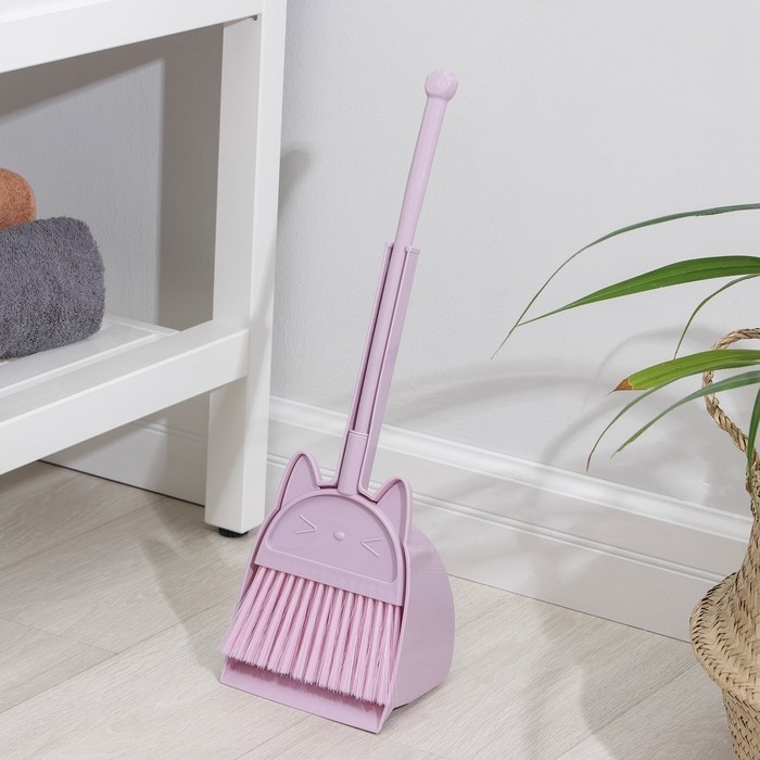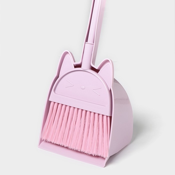 Щётка для пола Доляна «Китти»: щётка 14×50 см, совок 16×13×38 см, цвет розовый