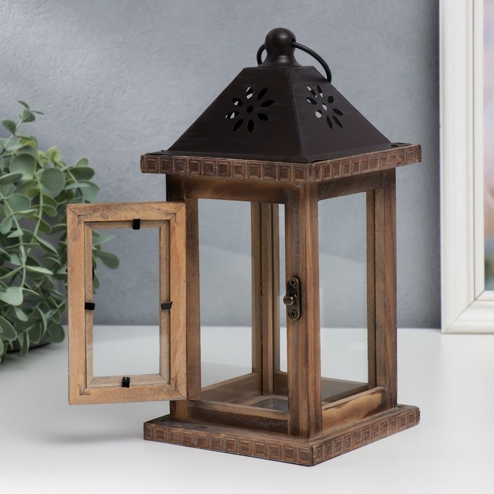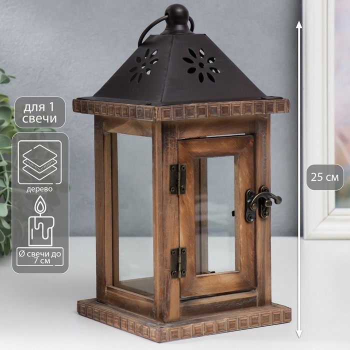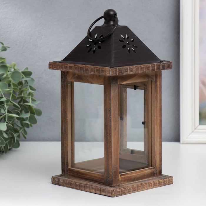 Подсвечник дерево на 1 свечу "Фонарь" состаренный 25х12,5х12,5 см