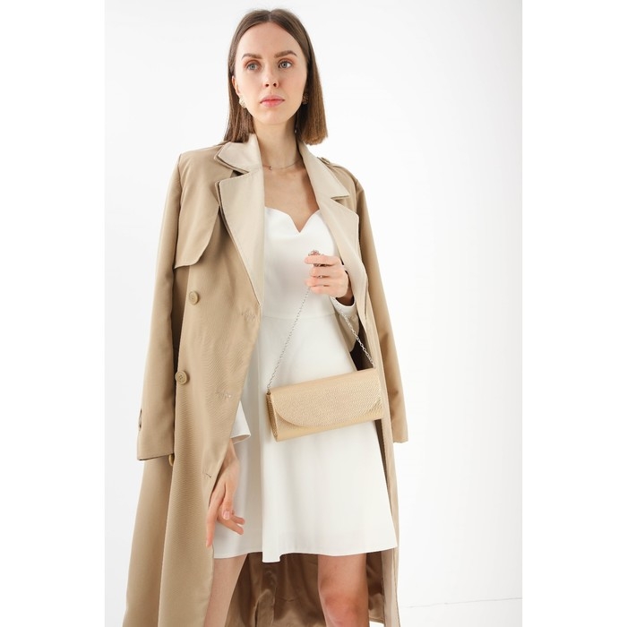 Сумка-клатч на магните, длинная цепь, цвет бежевый