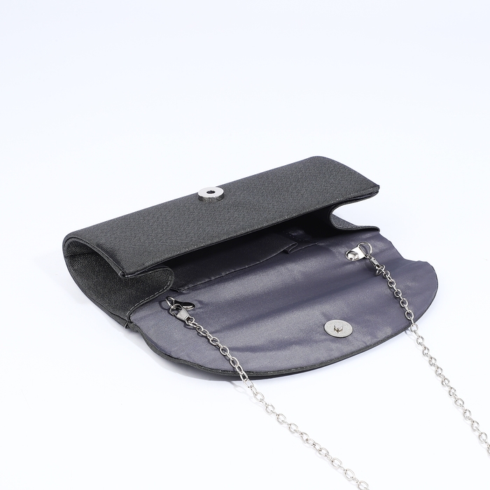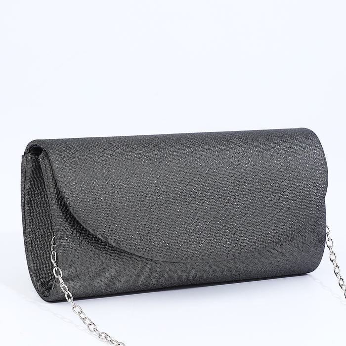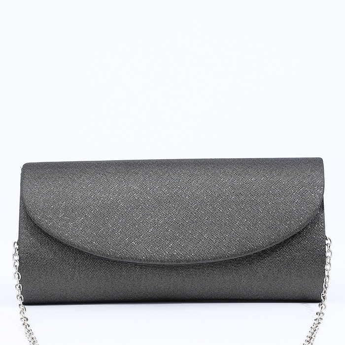 Сумка-клатч на клапане, длинная цепь, цвет серый