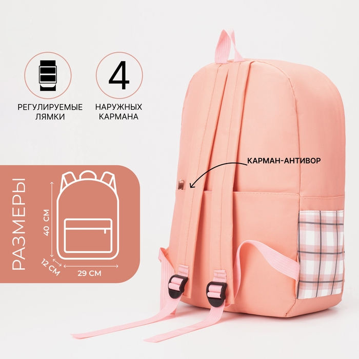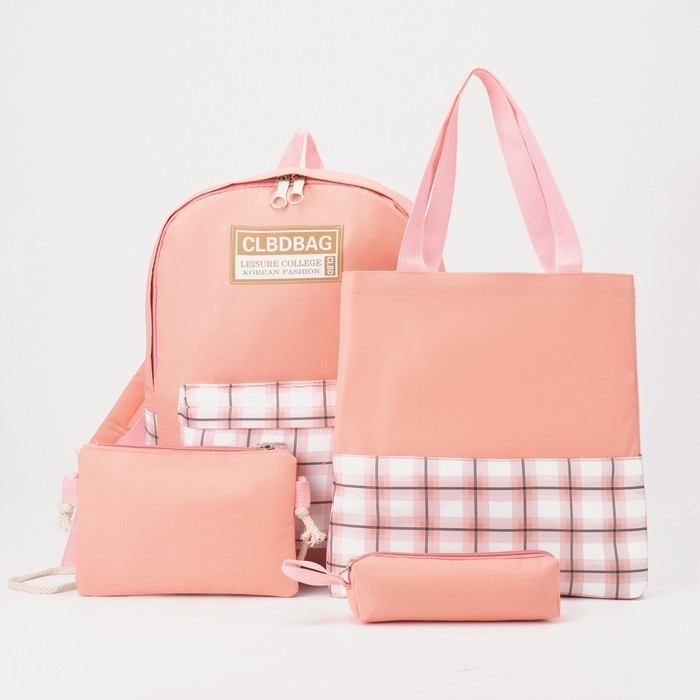 Набор рюкзак на молнии, шопер, сумка, косметичка, цвет персиковый