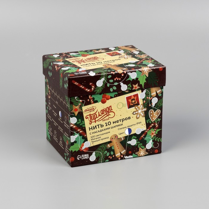 Гирлянда «Нить» 10 м с насадками «Шарики 1.5 см», IP44, тёмная нить, 100 LED, свечение бело-синее, мигание, 220 В