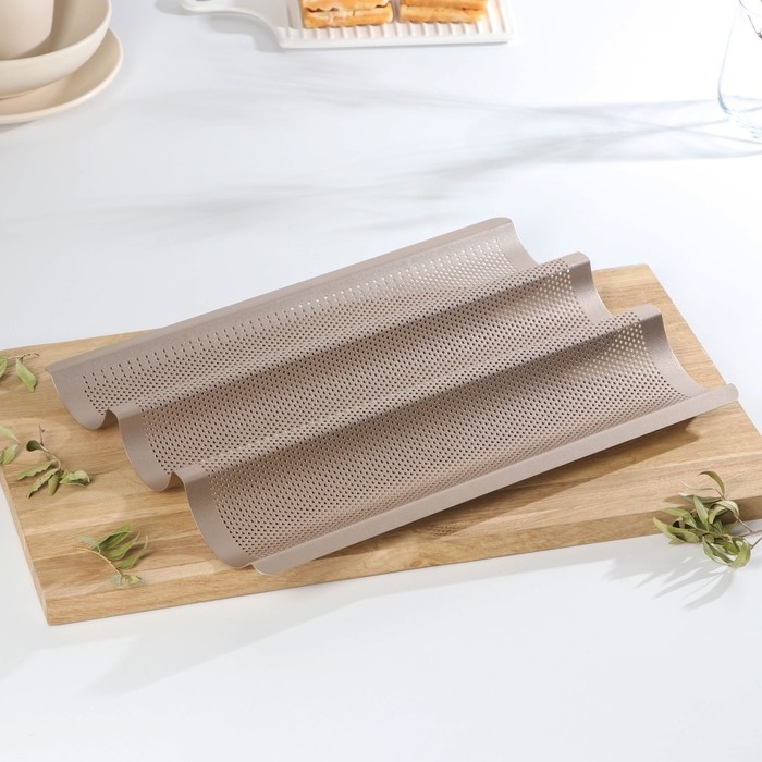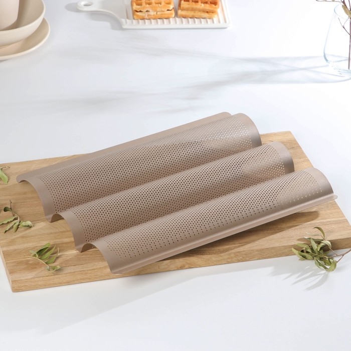 Форма для выпечки багетов Gold перфорированная, 38,5×28,5×3,5 см, антипригарное покрытие, цвет золотой