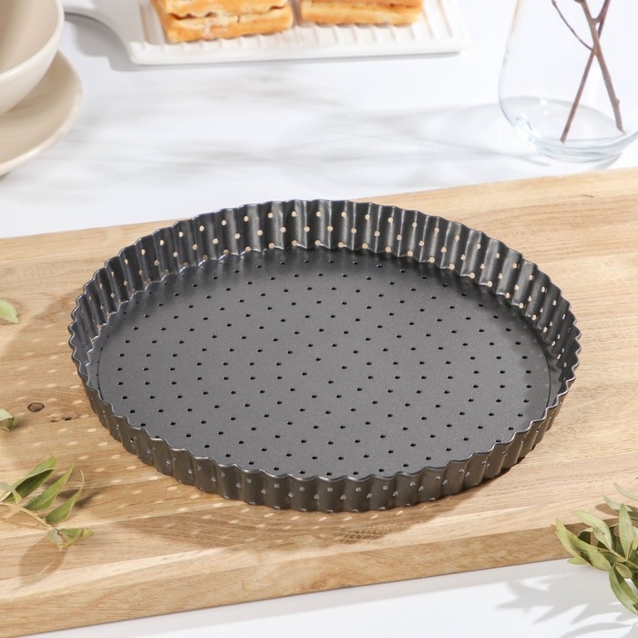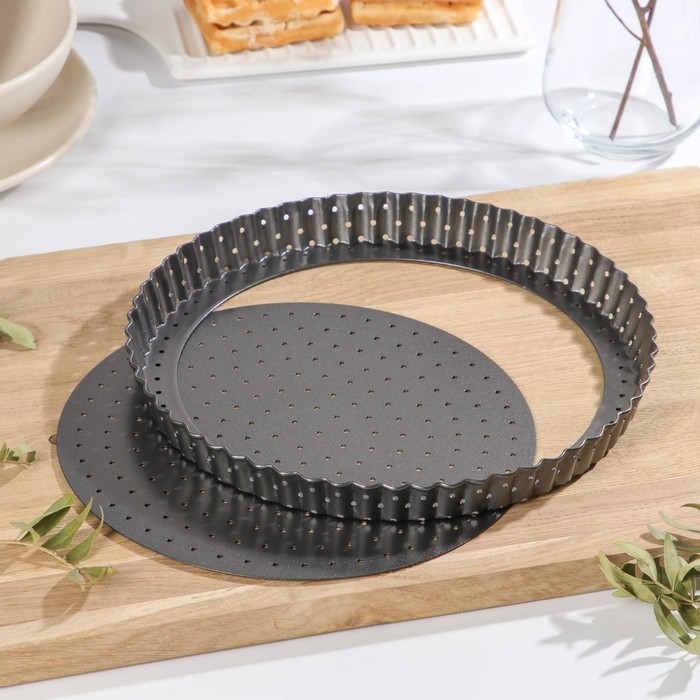 Форма для выпечки Доляна Galaxy перфорированная, 24×3 см, съёмное дно, антипригарное покрытие, цвет чёрный