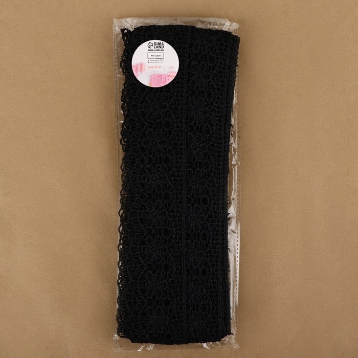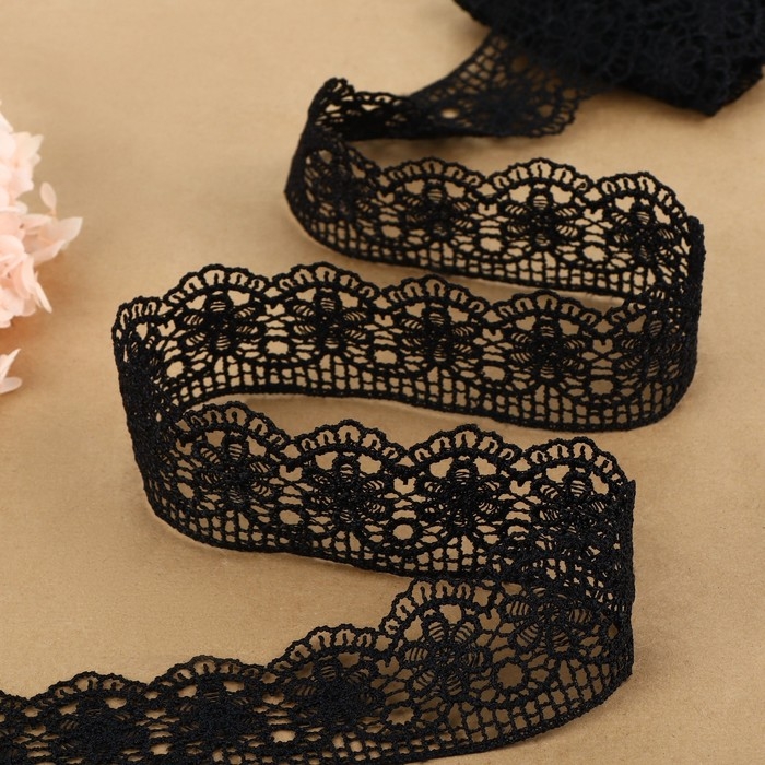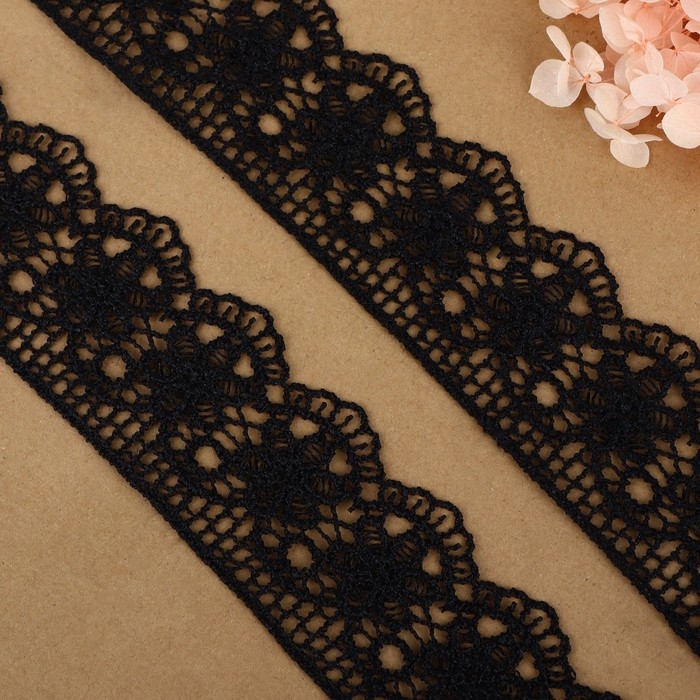Кружево гипюровое, 45 мм × 6,8 ± 0,5 м, цвет чёрный